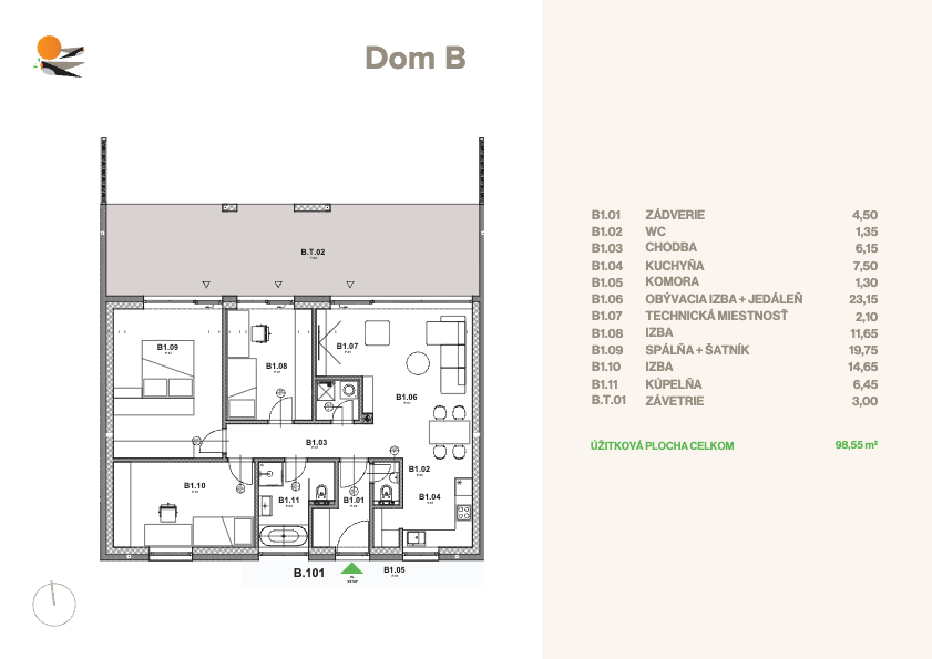 Úžitková plocha celkom: 98,55 m2